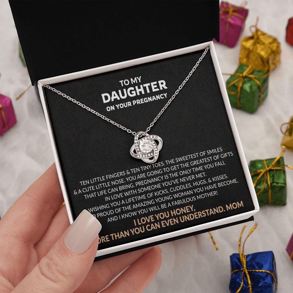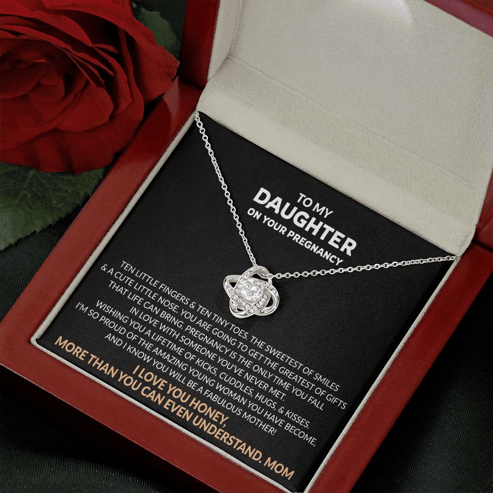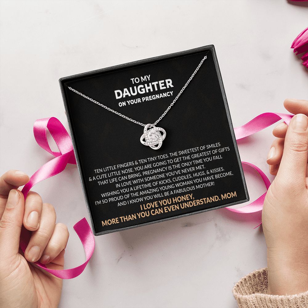 To My Daughter On Your Pregnancy from mom Wishing you a lifetime of kicks, cuddles, hugs, & kisses. Love Knot Necklace